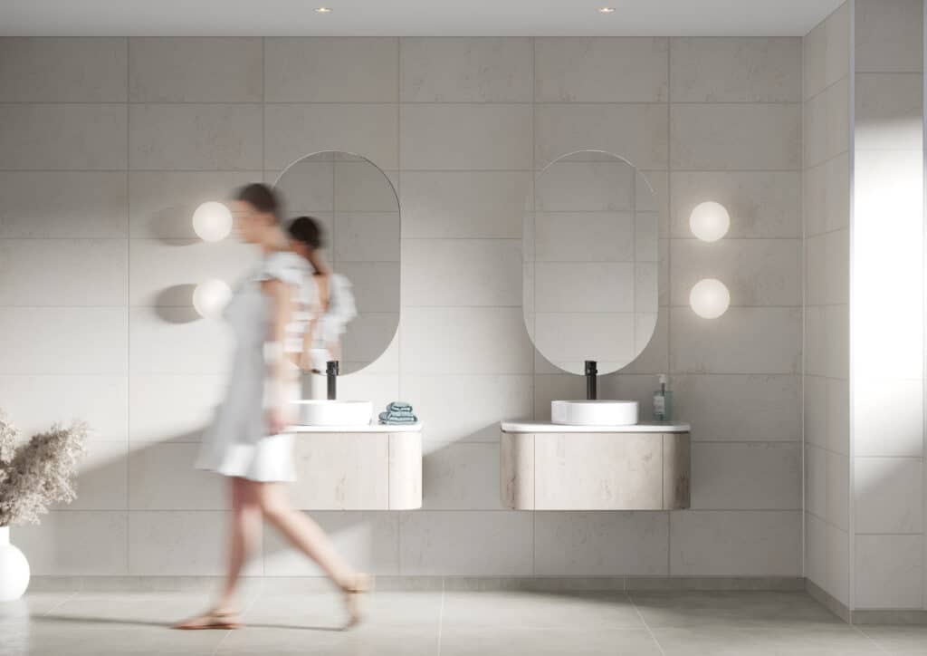 Välj en helt slät vägg för ett rent och modernt uttryck, eller arbeta med kakelmönster som 60×60, 60×30, 15×15, chevron eller hexagon för att skapa struktur och rörelse.