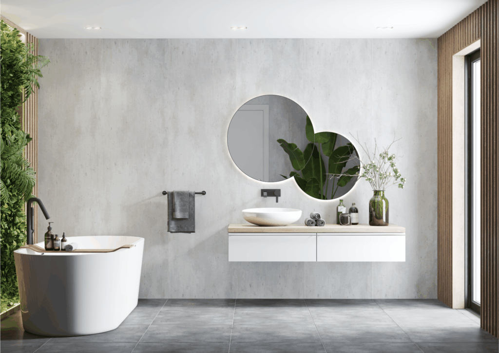 En tydlig riktning i modern badrumsdesign är den sammanhängande väggen. Lugna ytor utan synliga fogar ger ett mer arkitektoniskt och genomarbetat uttryck.