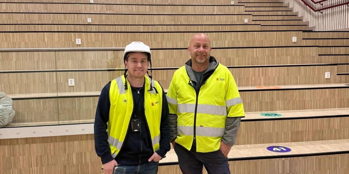 – Vi överlämnade nybygget den 3 juli, berättar Henrik Lie Nilsen från entreprenadfirman Backe Østfold AS. – Det har varit ett omfattande projekt med ny byggnad, ny idrottshall, konstgräsplan och uppgradering av den gamla skolbyggnaden. När eleverna kommer tillbaka efter sommaren möts de av en helt ny skoldag.